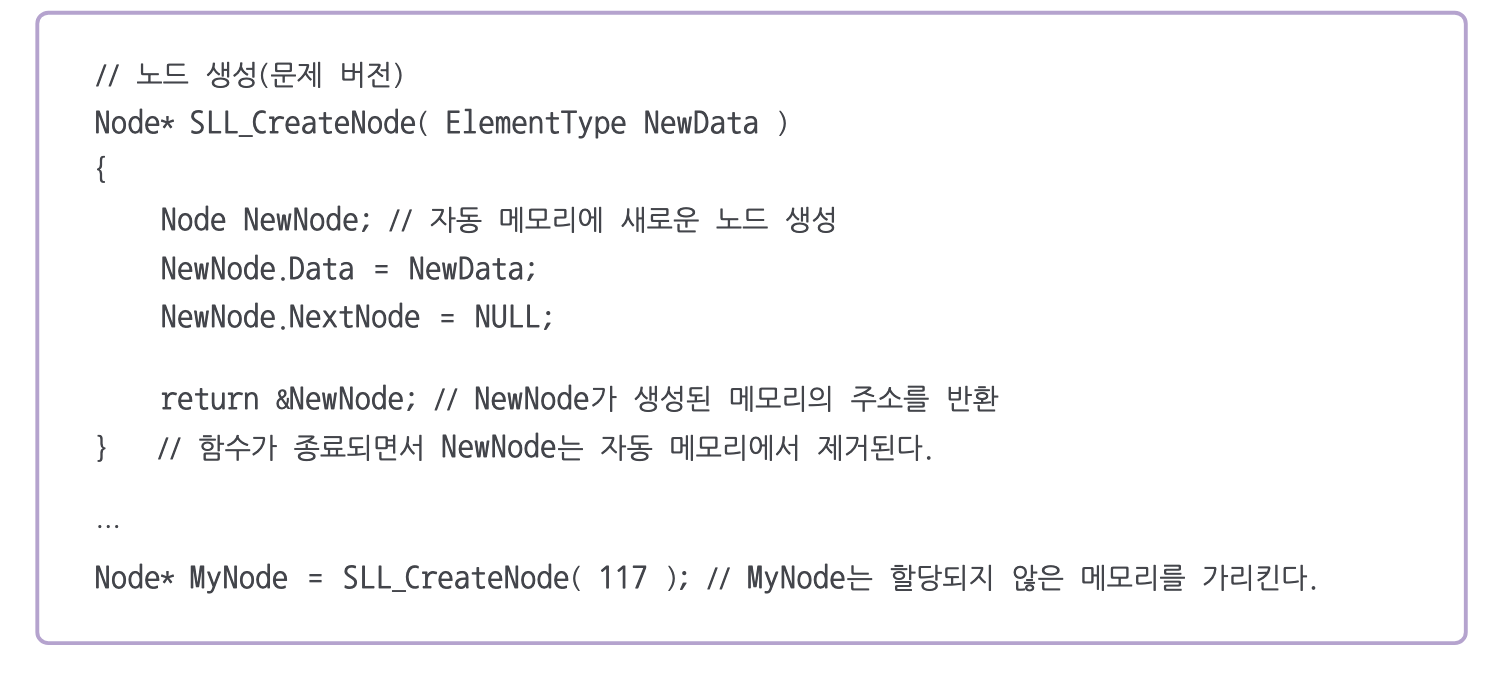 자동 메모리에 의해 제거된 NewNode가 존재했던 메모리의 주소를 담고 있다.