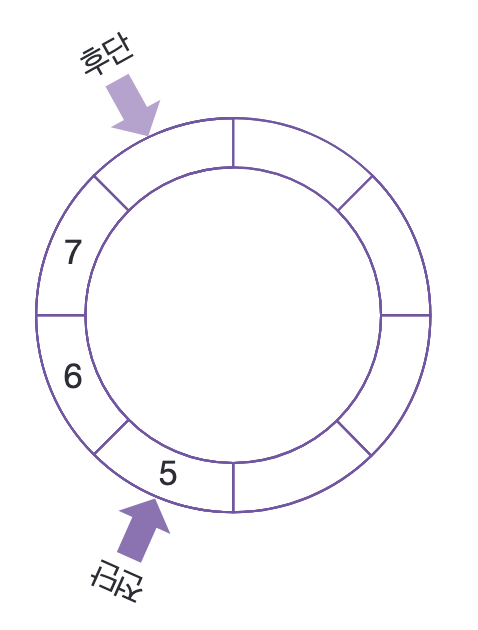 삽입이 이루어질 때마다 후단이 뒤로 후퇴하다가 전단을 만나면 큐는 '가득 찬 상태' 가 된다.
