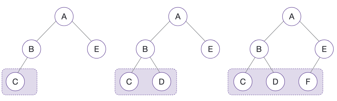 그리고 B, C, D 트리의 왼쪽 하위 트리는 C이고