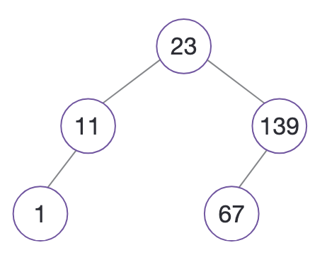 14는 23보다 작으므로 23의 왼쪽 트리에 위치해야 한다.